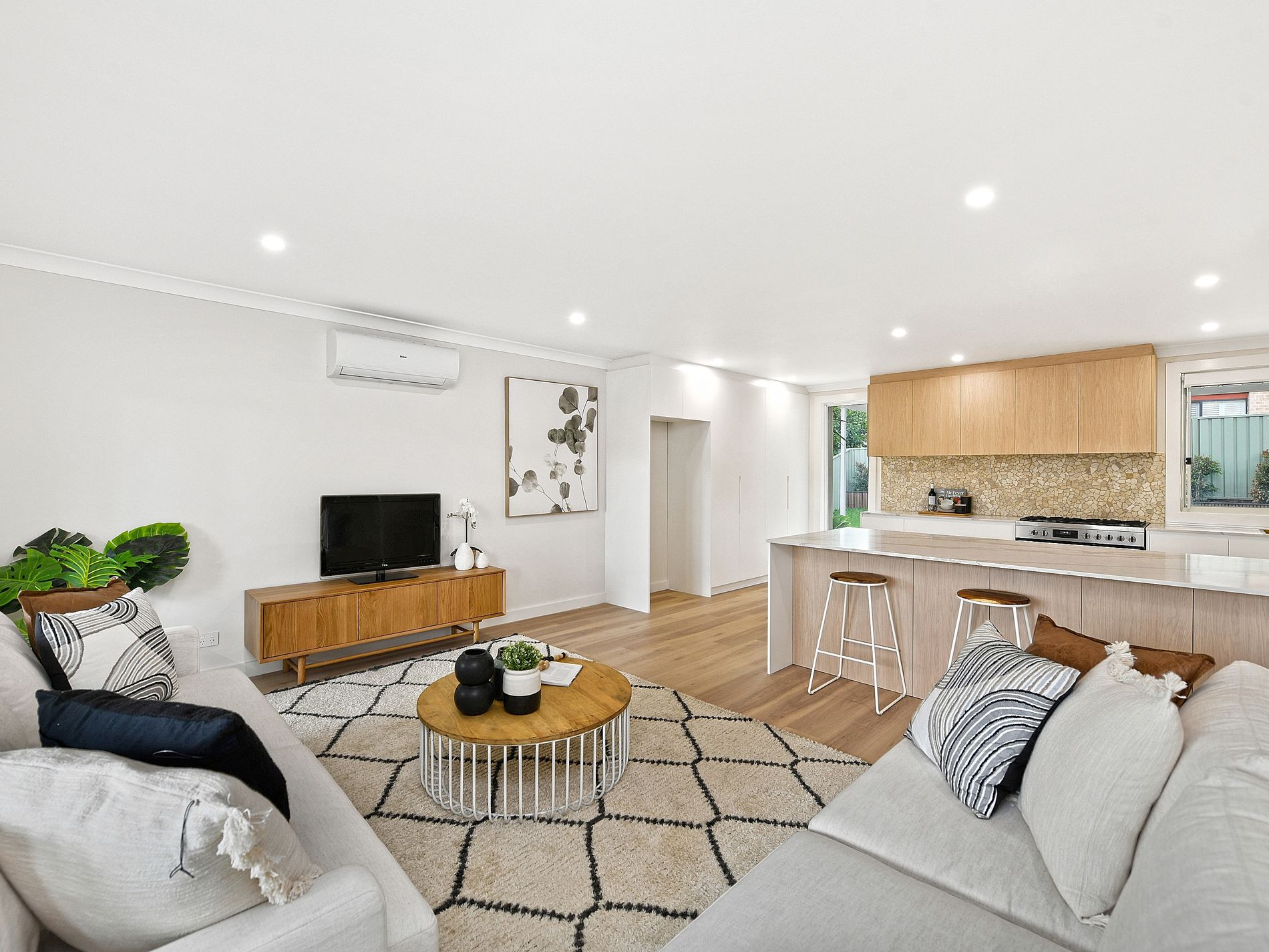 Air-conditioning, timber flooring and downlights throughout. Double garage with auto door and internal access.